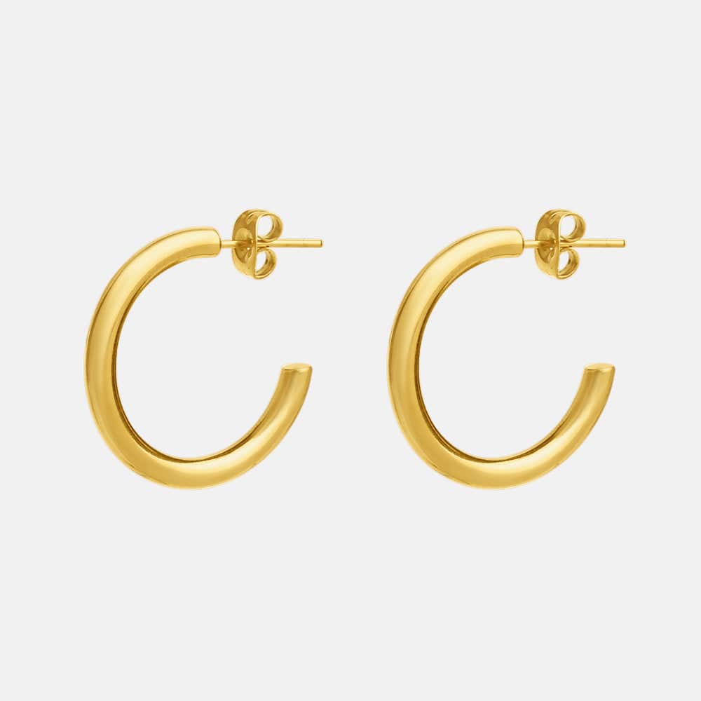 These hoop earrings are a chic everyday accessory that will add style to your look. These gold-plated eye-catchers are guaranteed to make a statement. The classic hoop design is given a special touch by its shiny high-gloss finish.