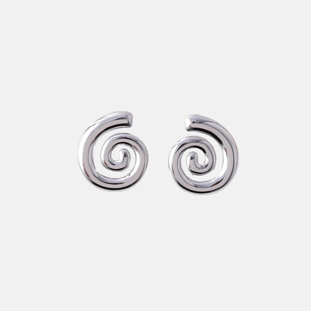 These spiral earrings made of 18K gold-plated stainless steel combine a unique spiral design with durable materials. Available in gold and silver, these earrings offer an eye-catching look that enhances any outfit. The high-quality materials guarantee durability and stylish accents for any occasion. Perfect for everyday use or special occasions.