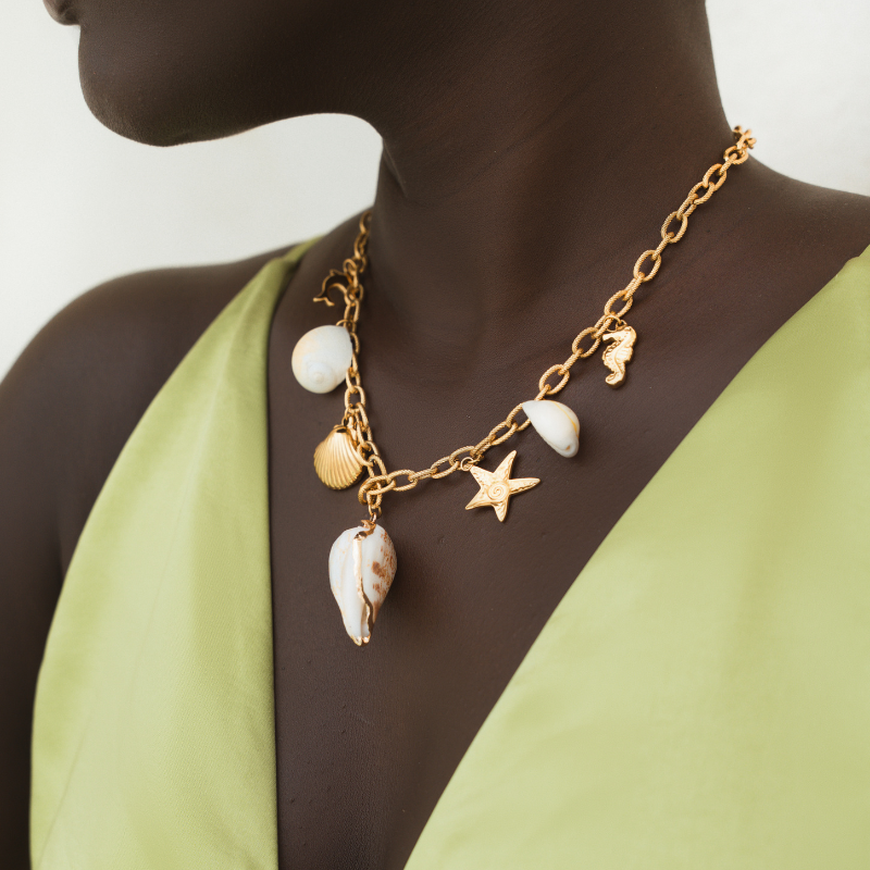 Seashells, starfish, and a tiny seahorse basically a whole beach day on a chain. Waterproof, everyday-fun, and perfect for layering with your summer fits.
