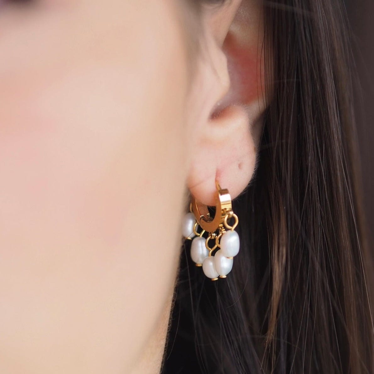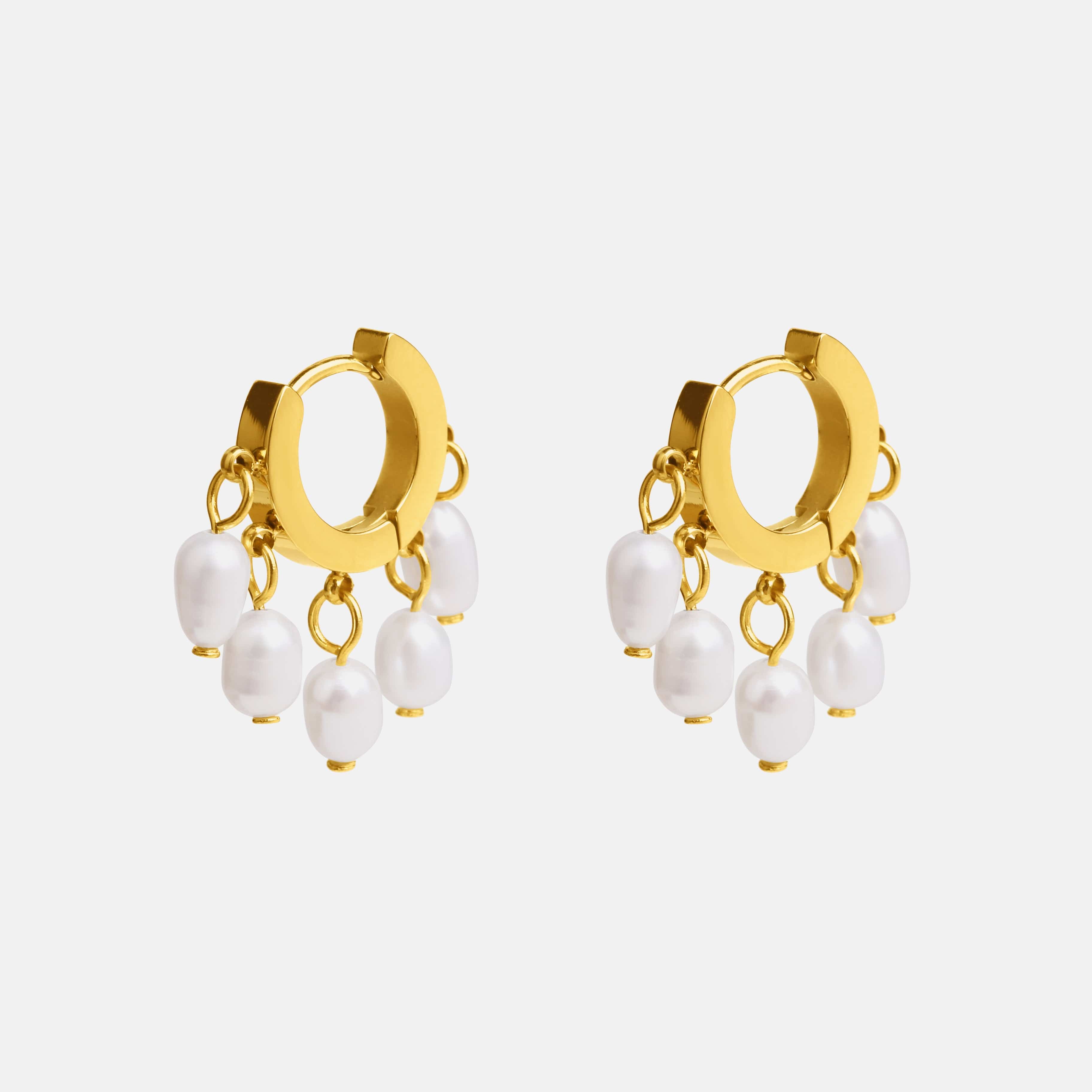 Here, striking beauty meets timelessly chic designs! The gold-colored hoop with a simple clip closure and delicate freshwater pearl pendants will become a real statement piece in your jewelry collection. Let yourself be enchanted by these eye-catching pieces!