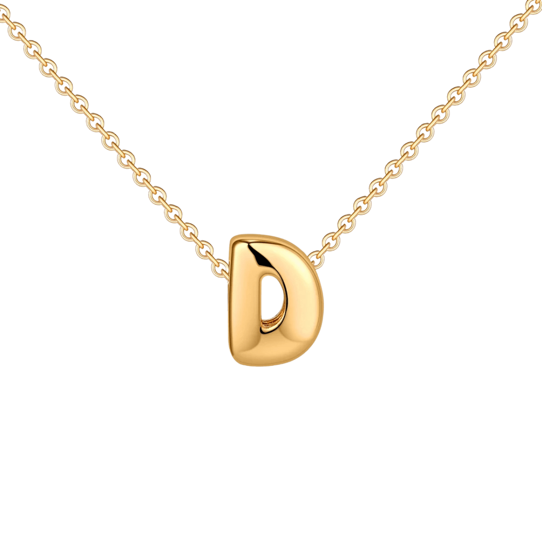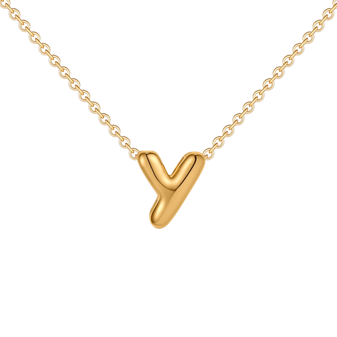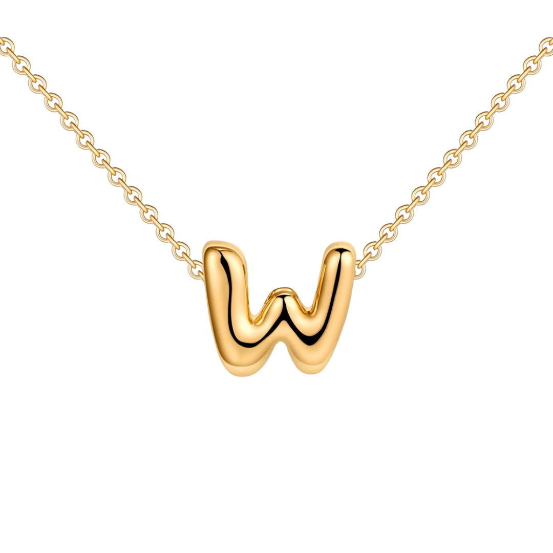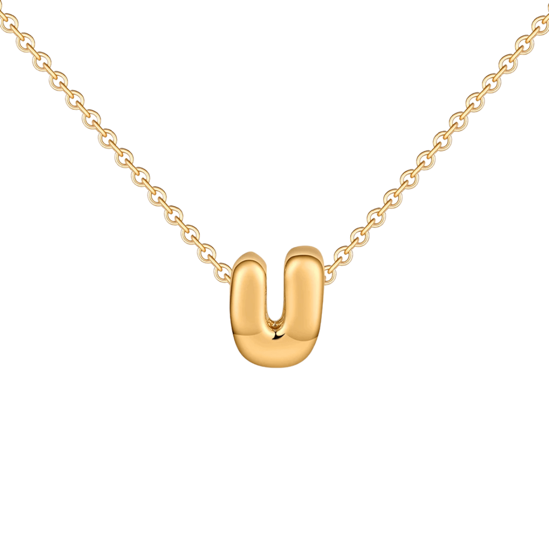 This personalized necklace made of 18-karat gold-plated stainless steel is a unique accessory that stylishly showcases your initials. With its modern bubble letter design, the necklace is an eye-catching highlight for any look. Choose up to three letters to customize your necklace. The high-quality gold plating ensures long-lasting shine and makes this piece of jewelry the perfect gift for special occasions or as a personal statement.