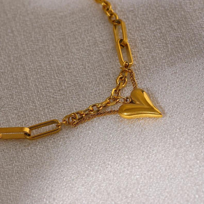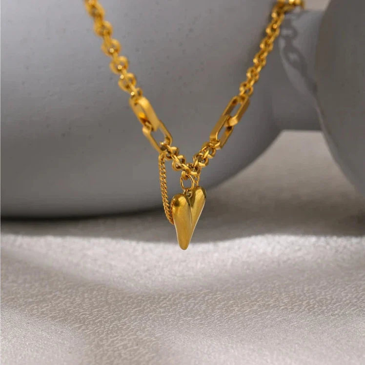 Elegant women's necklace with heart pendant in shiny gold or silver. The modern link chain adds a stylish accent to any outfit and is perfect for everyday wear or special occasions. Ideal as a romantic gift for women who love timeless jewelry with meaning.