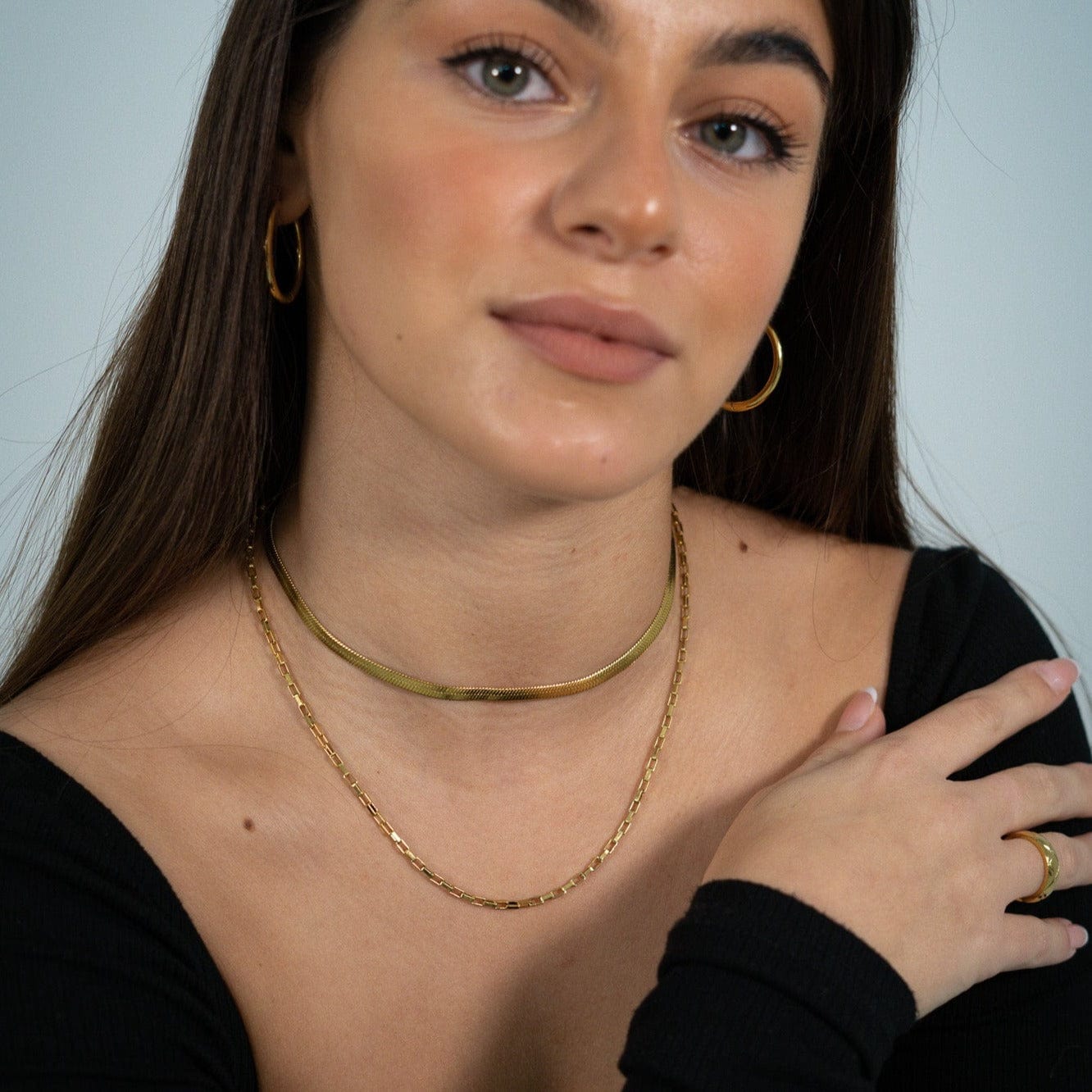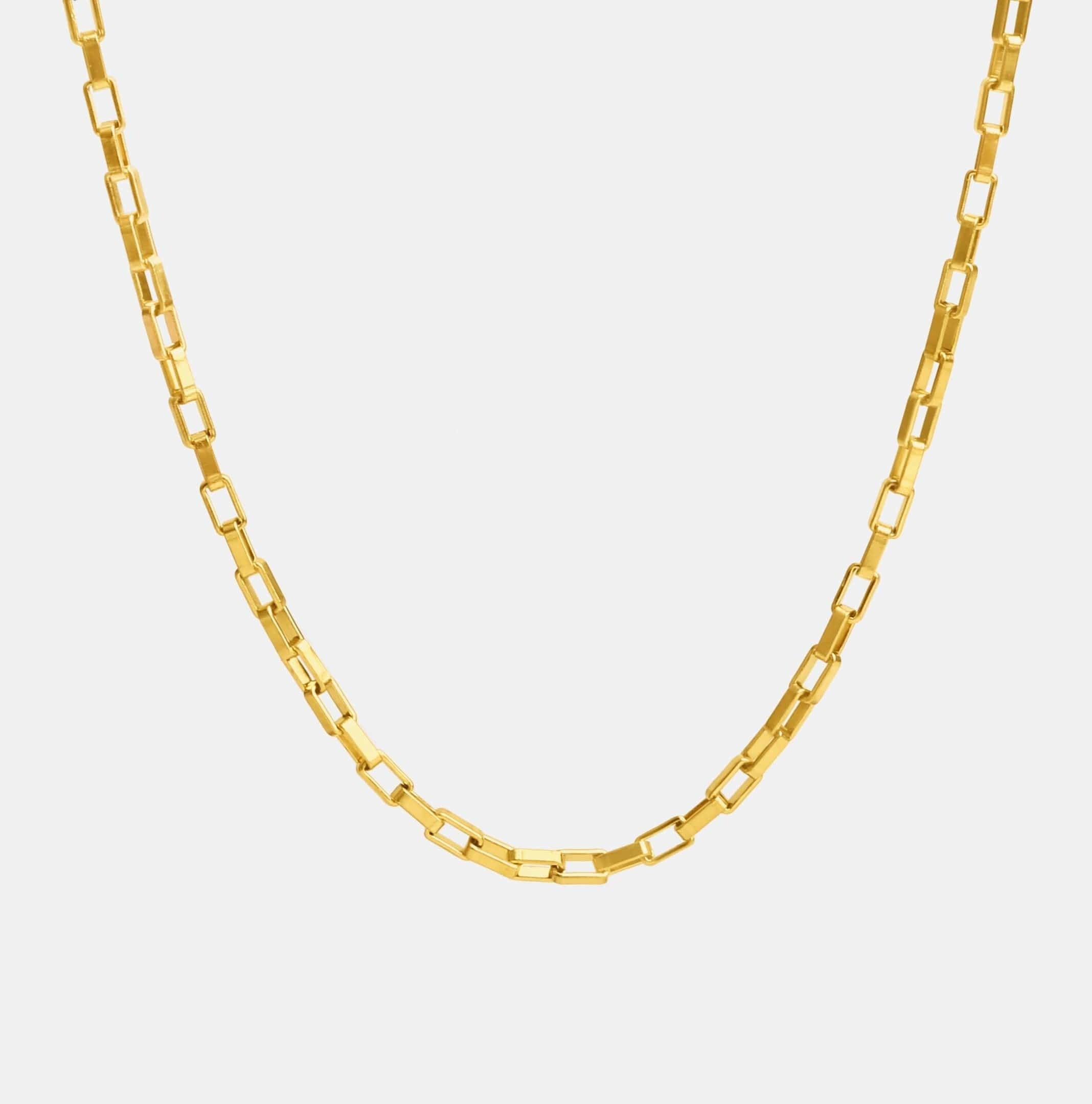 This strikingly beautiful women's necklace made of rectangular chains shines particularly brightly thanks to its delicate and simple design. Its simplicity allows for numerous layering options, accompanying you through everyday life in style. Let yourself be enchanted by this must-have!