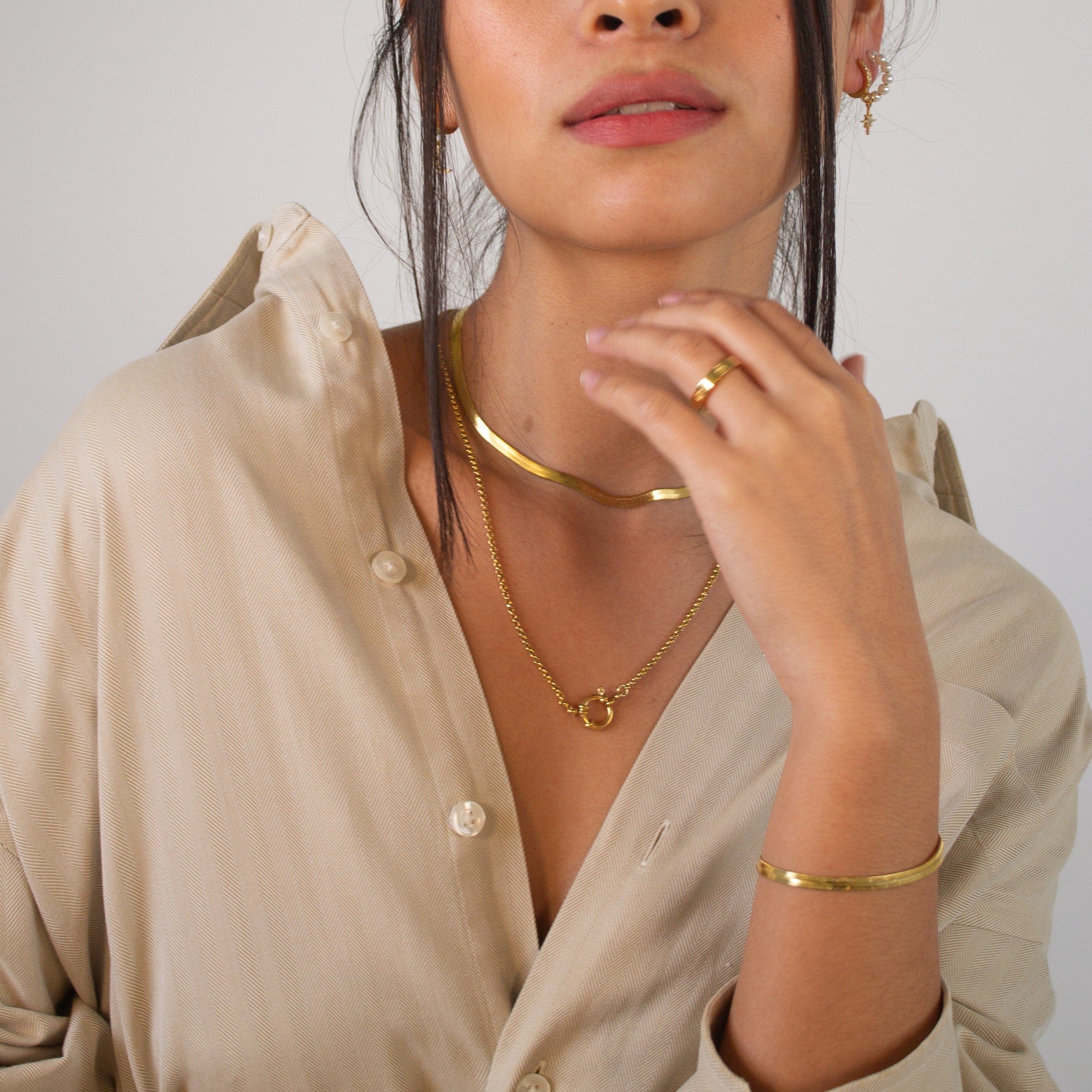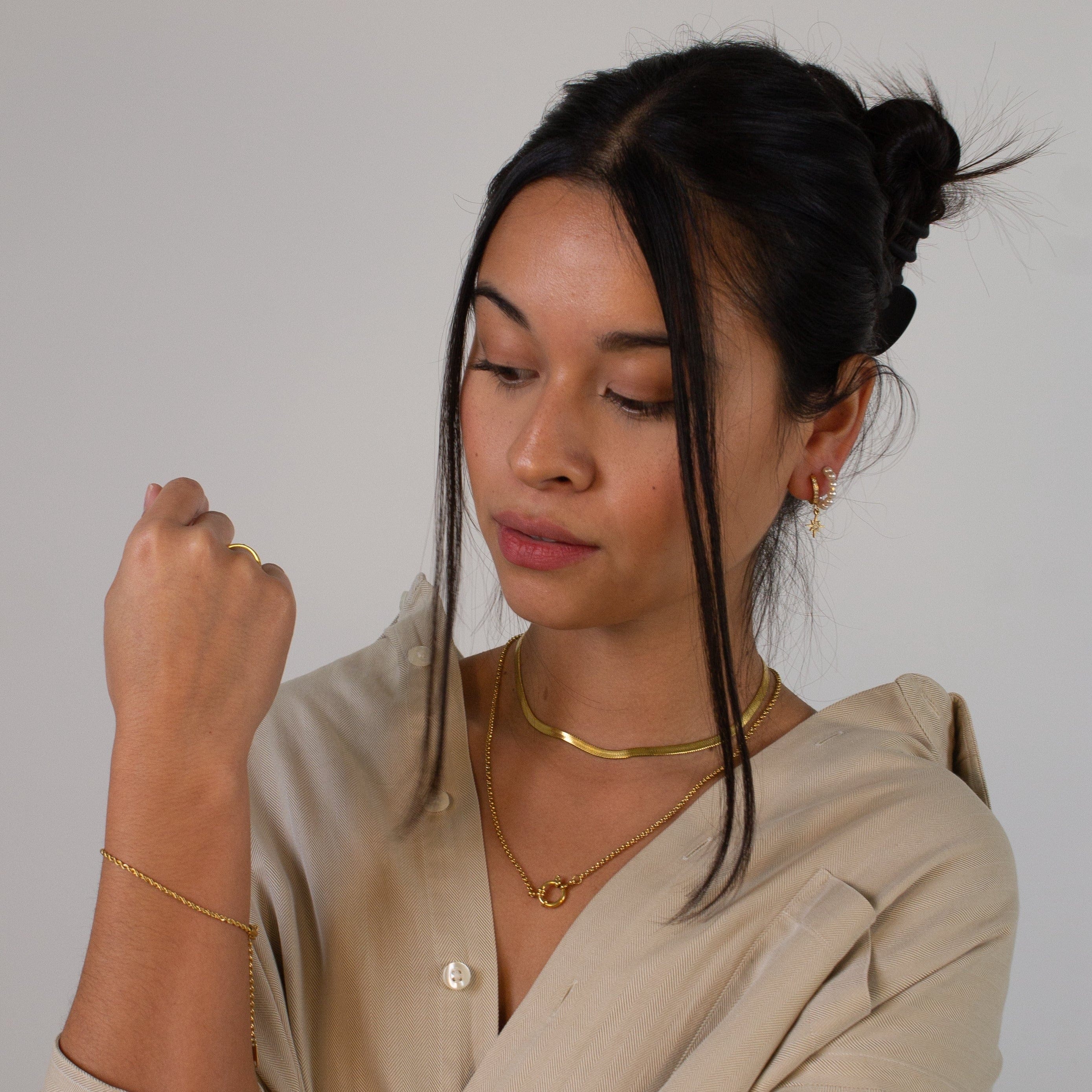 - Warm Skin Tones: Do you have skin with a yellow, olive, or peachy undertone? This skin type is often seen in women of Mediterranean, Middle Eastern, or Latin American descent. Jewelry in colors such as yellow gold and rose gold accentuate the warmth in your skin and make you glow with a soft, radiant glow. Our gold-colored necklaces and bracelets are perfect for you because they emphasize your natural beauty without overpowering it.