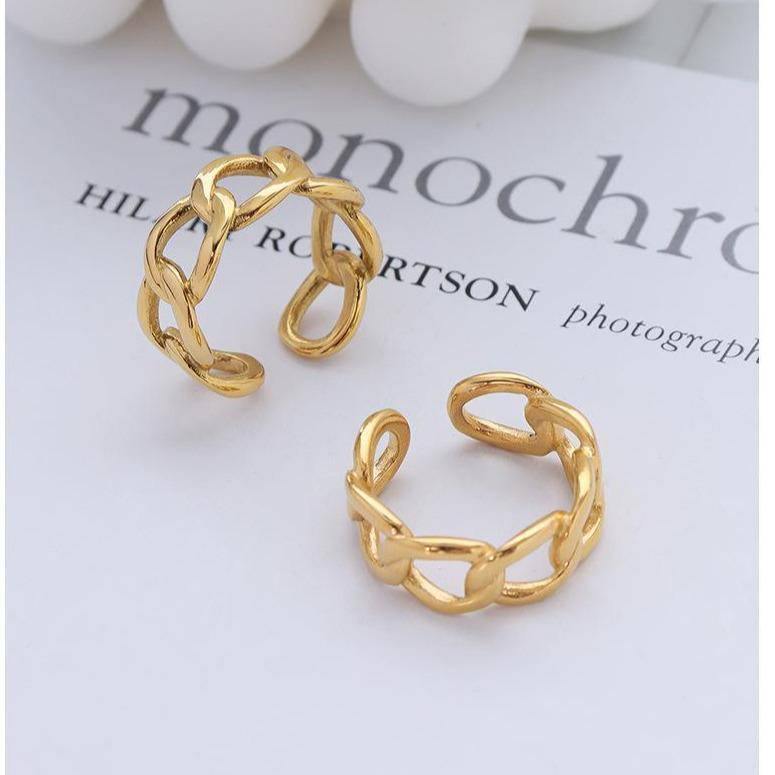 This yellow gold ladies' ring made of high-quality stainless steel and 18k gold plating features the popular “chain look” in an elegant high-gloss finish. Expand your fashionable jewelry collection with this eye-catching piece if you're ready for versatile combinations and exceptional comfort!