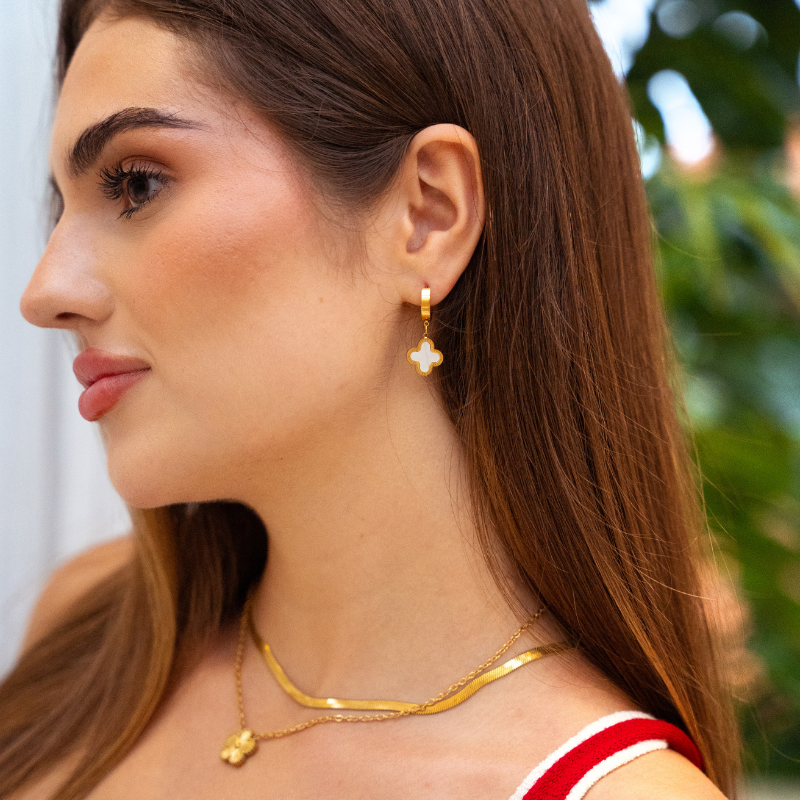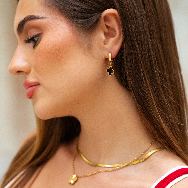 These sleek black clover danglers are here to flirt, shine, and maybe get you into a little trouble (the fun kind). Waterproof, lightweight, and drama-ready, because basic studs just don’t cut it anymore.