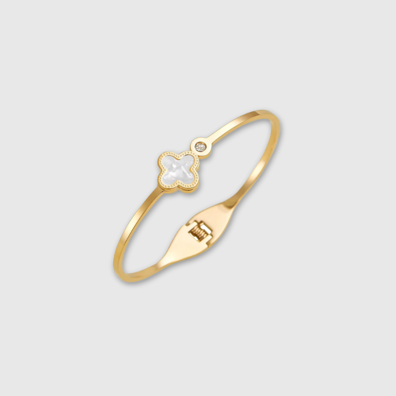 This sleek bangle snaps on like it’s sealing the deal, with a shiny black clover, a cheeky sparkle, and a built-in “you’re not losing me today” clasp. Waterproof, attitude-ready, and low-key giving engaged to myself energy.