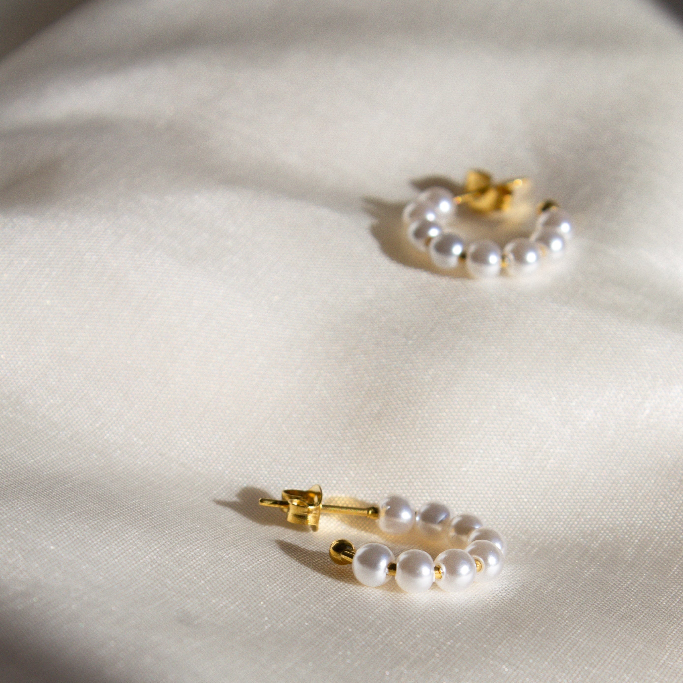 The Cullera hoops with charming gold clasps and delicate freshwater pearls in a shiny white finish are the must-have accessory for your outfit and are guaranteed to turn heads! For simple elegance that has been cleverly designed and goes with any outfit.