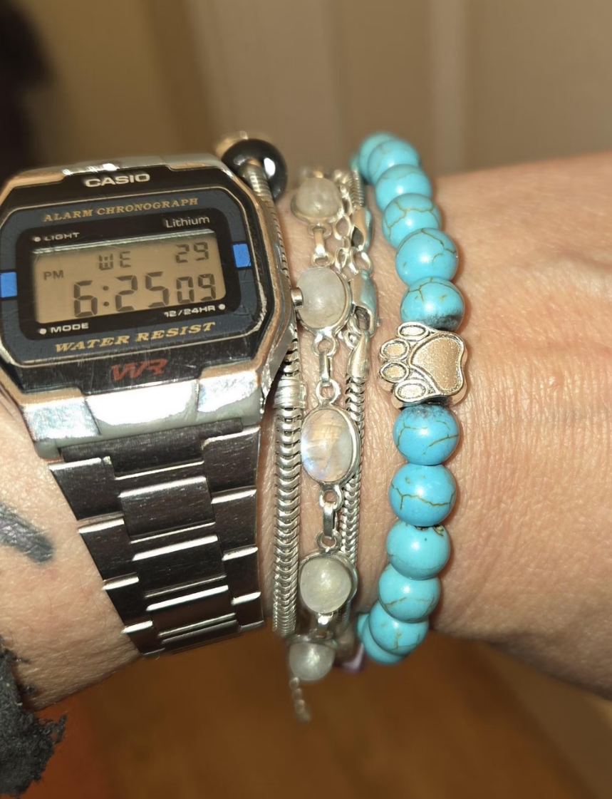 Not a jewelry person but this one's actually pretty low-key. Max (my lab) 100% knows what it means now. Put it on = he grabs his leash. Pretty genius honestly