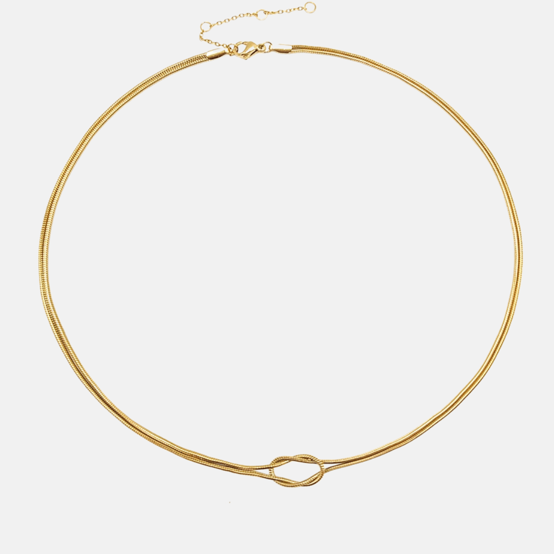 This knot necklace made of 18K gold-plated stainless steel adds a modern and simple touch to any outfit. The sturdy stainless steel chain is available in gold and silver and offers a subtle yet striking accent thanks to its delicate knot design. Ideal for everyday use or as an elegant accessory for special occasions.