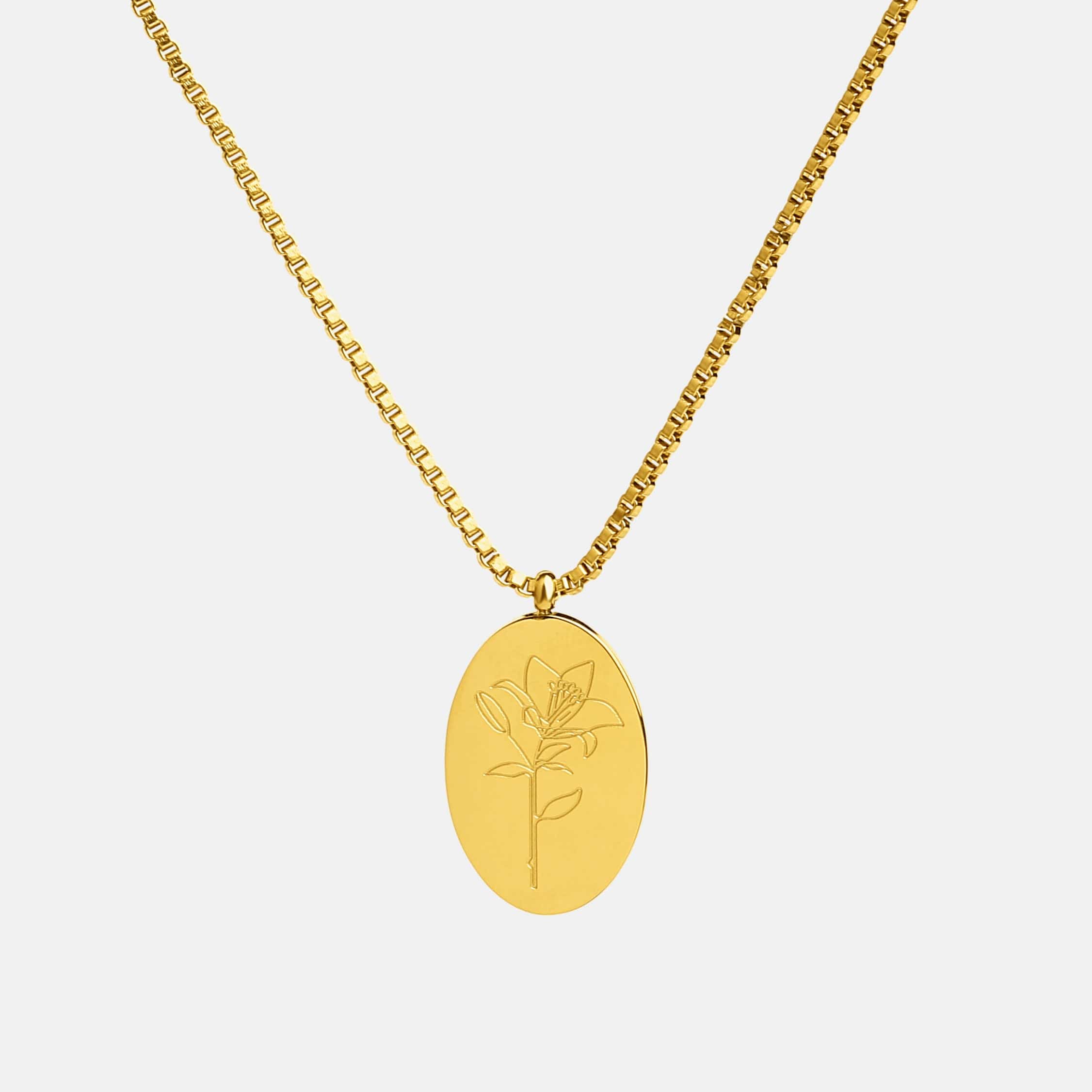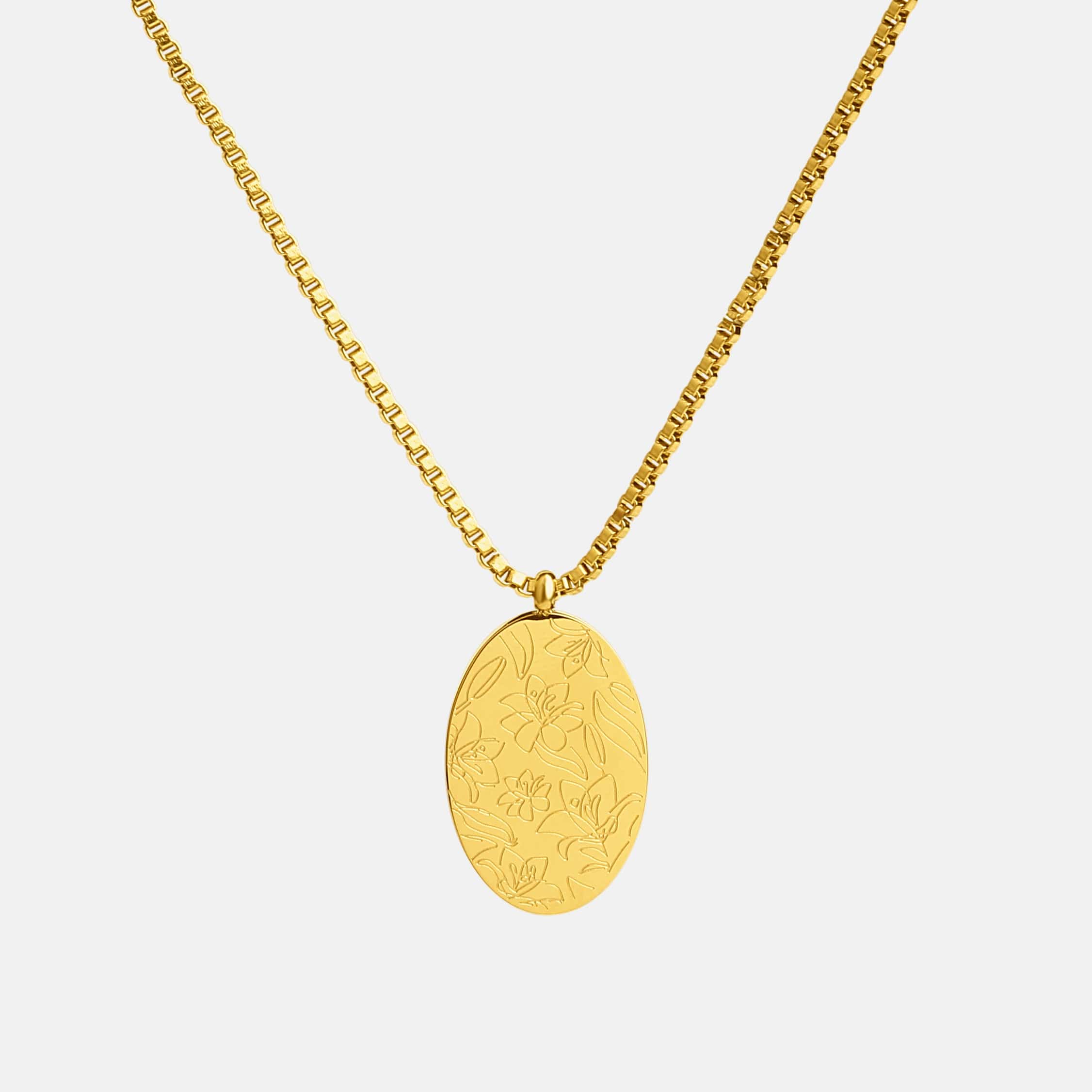 This beautiful necklace made of gold-plated stainless steel stands out thanks to its feminine, sensual design. The floral ornamental pendant at the heart of this eye-catching piece is both elegant and simple, creating an unforgettable look!