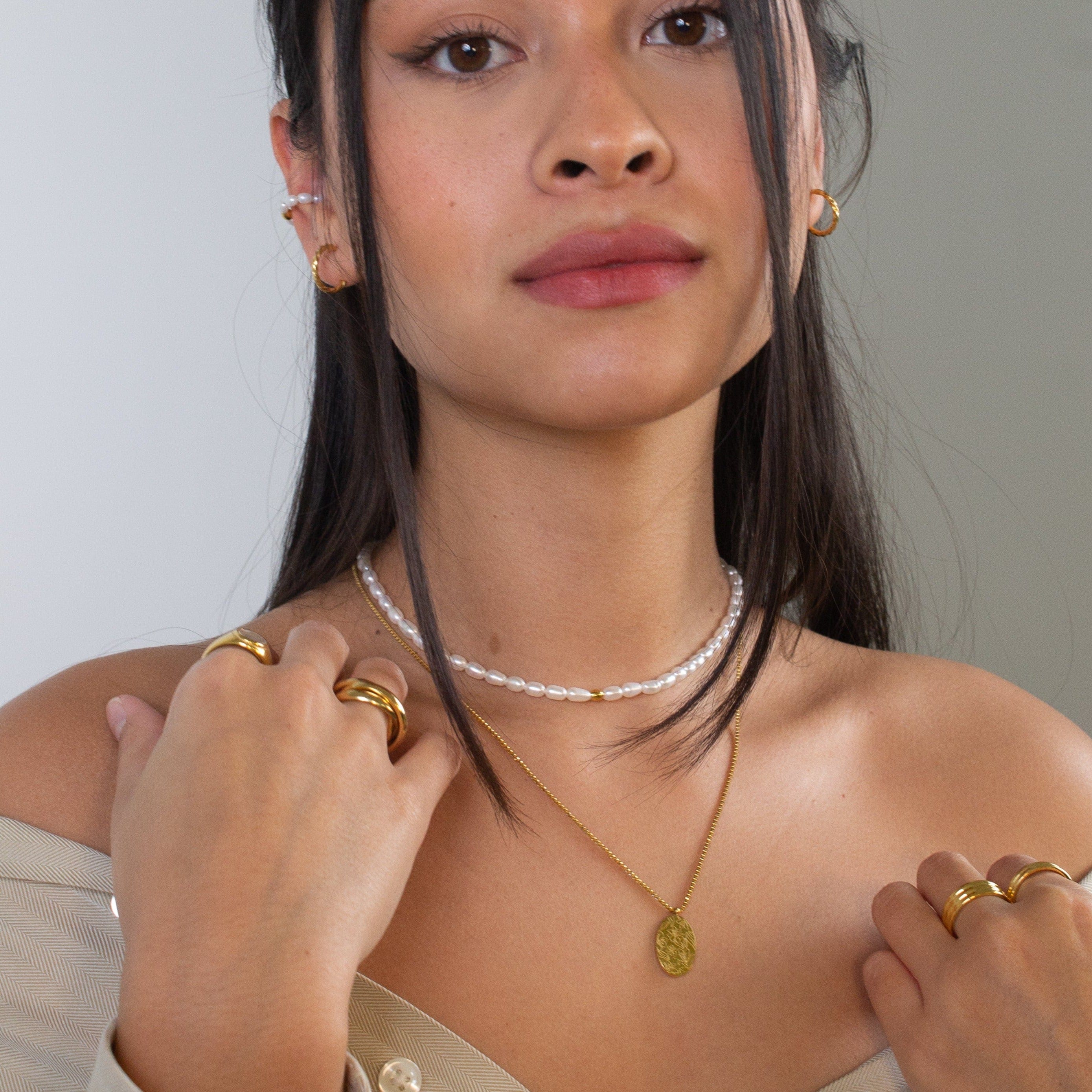 - Warm Skin Tones: Do you have skin with a yellow, olive, or peachy undertone? This skin type is often seen in women of Mediterranean, Middle Eastern, or Latin American descent. Jewelry in colors such as yellow gold and rose gold accentuate the warmth in your skin and make you glow with a soft, radiant glow. Our gold-colored necklaces and bracelets are perfect for you because they emphasize your natural beauty without overpowering it.