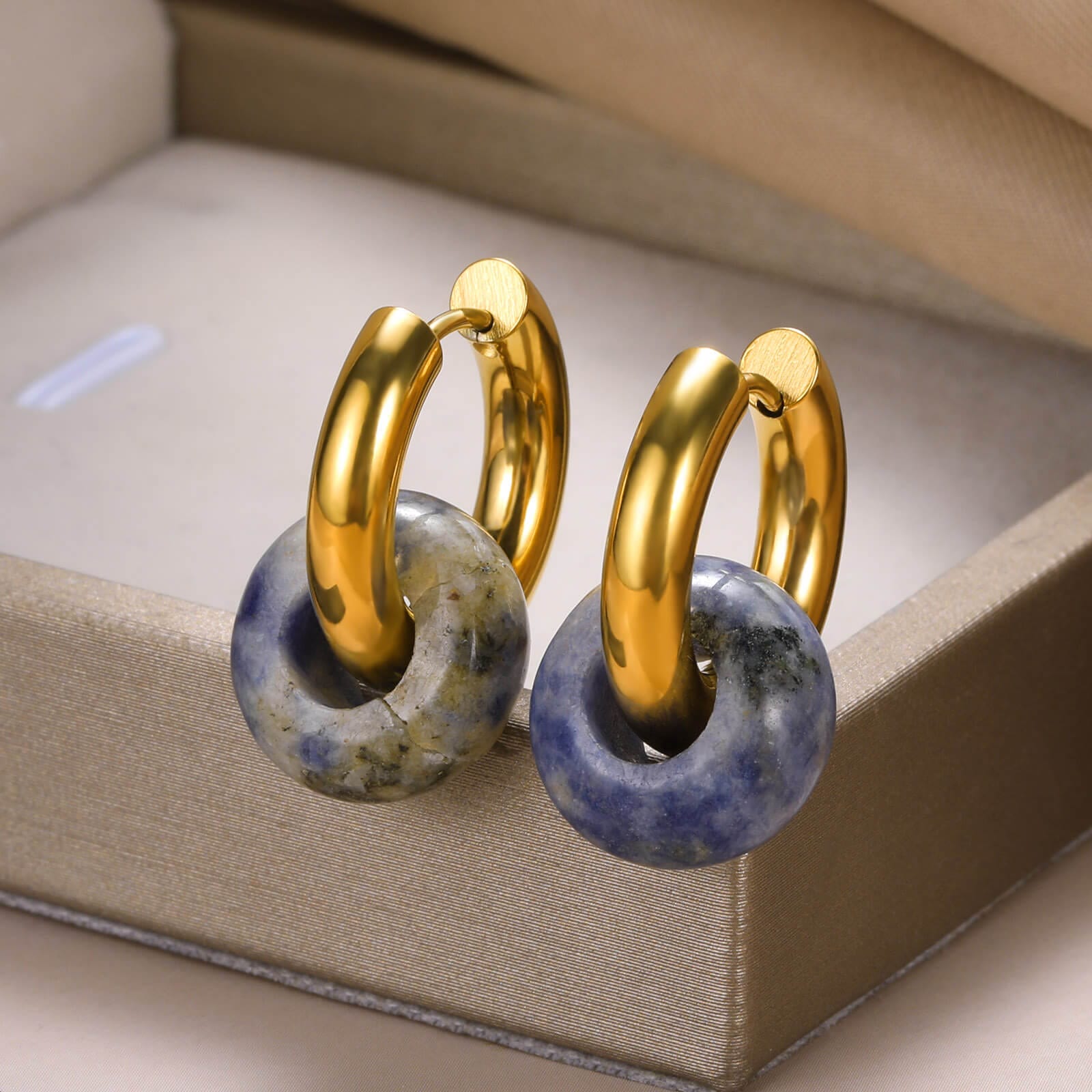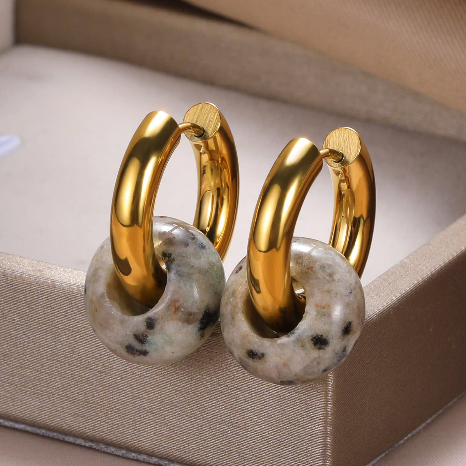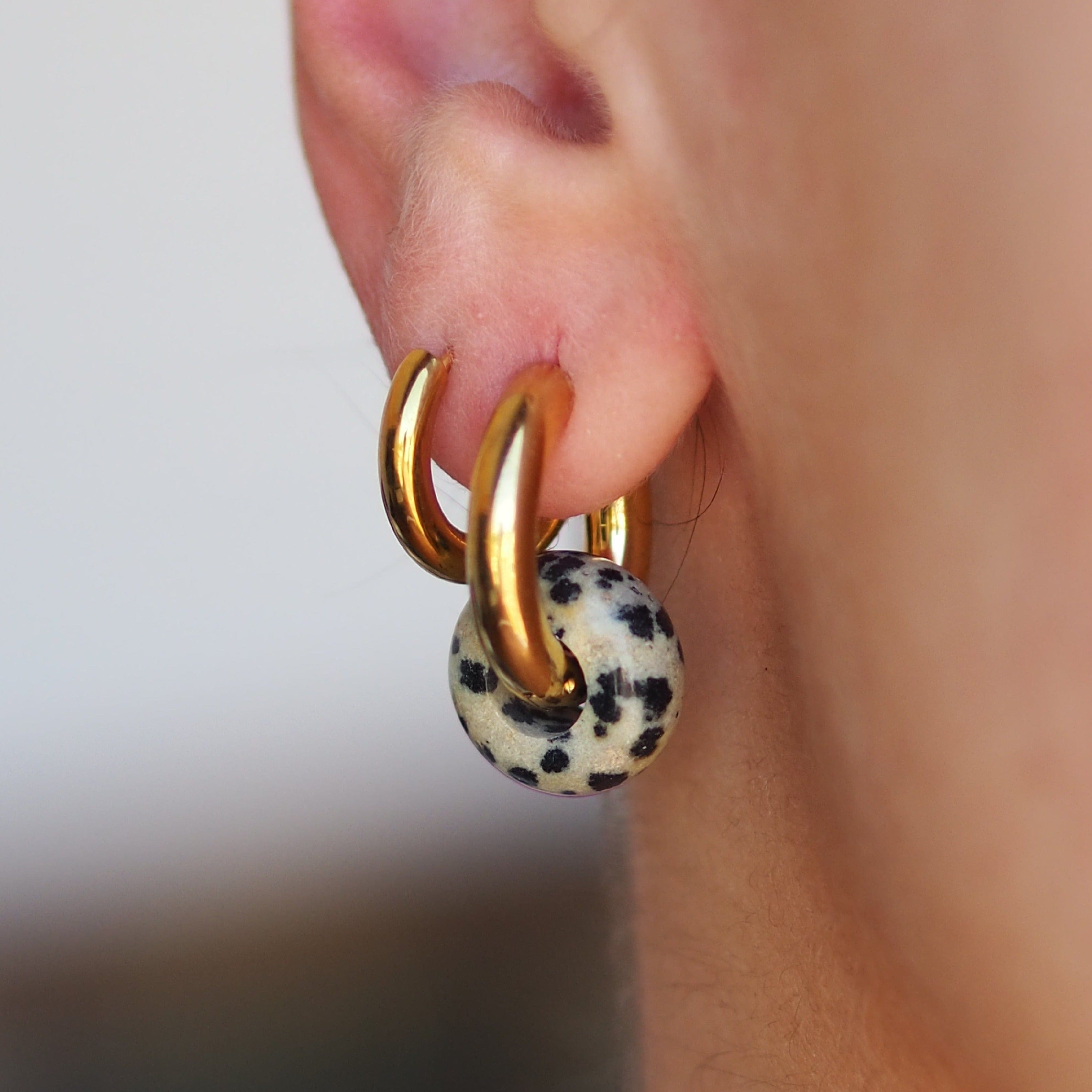The marble-design earrings are a modern and stylish accessory that adds that certain something to any outfit. The earrings are round in shape and made from a robust material with a beautiful marble-look pattern. Each earring is unique, as the pattern varies slightly, making each one one-of-a-kind. The earrings are available in different sizes to suit every taste and style. The marble design makes them versatile and easy to combine with any outfit.
