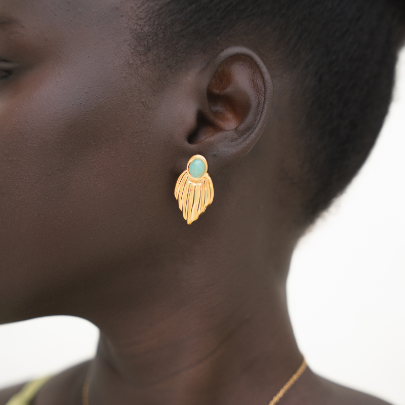 Gold waves and a pop of ocean blue like wearing a little secret from under the sea.