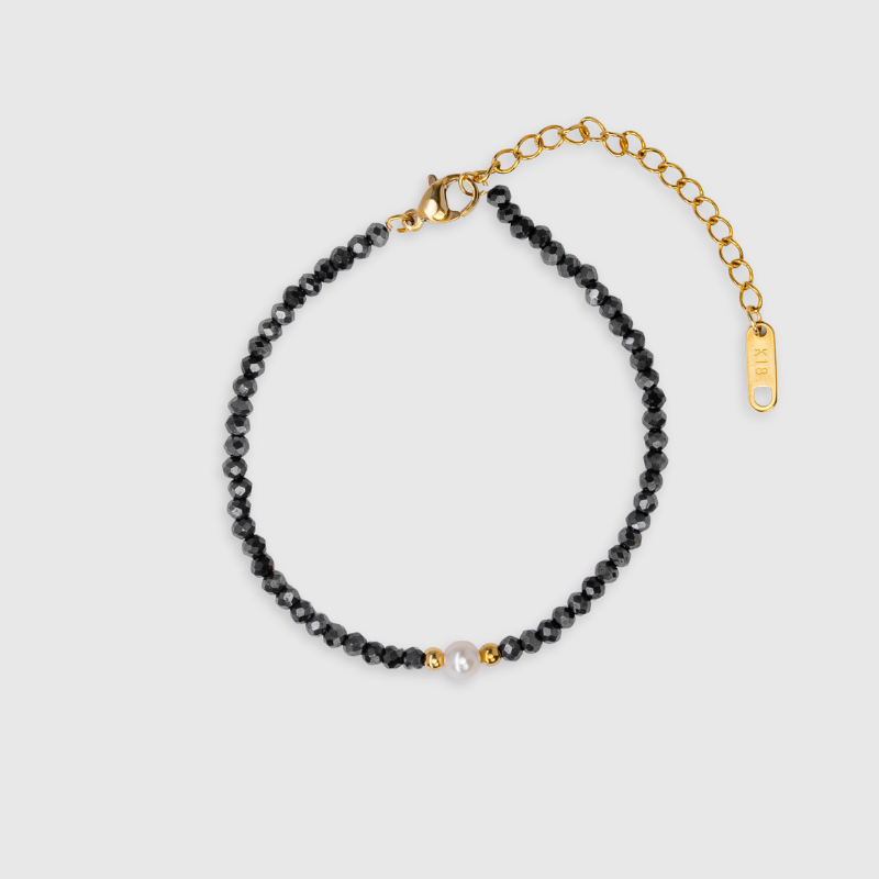 The Midnight Bracelet is a sleek and stylish accessory perfect for adding a touch of glam to any outfit! With its dark, elegant design, it’s perfect for both day and night looks. Simple, chic, and oh-so-cute!