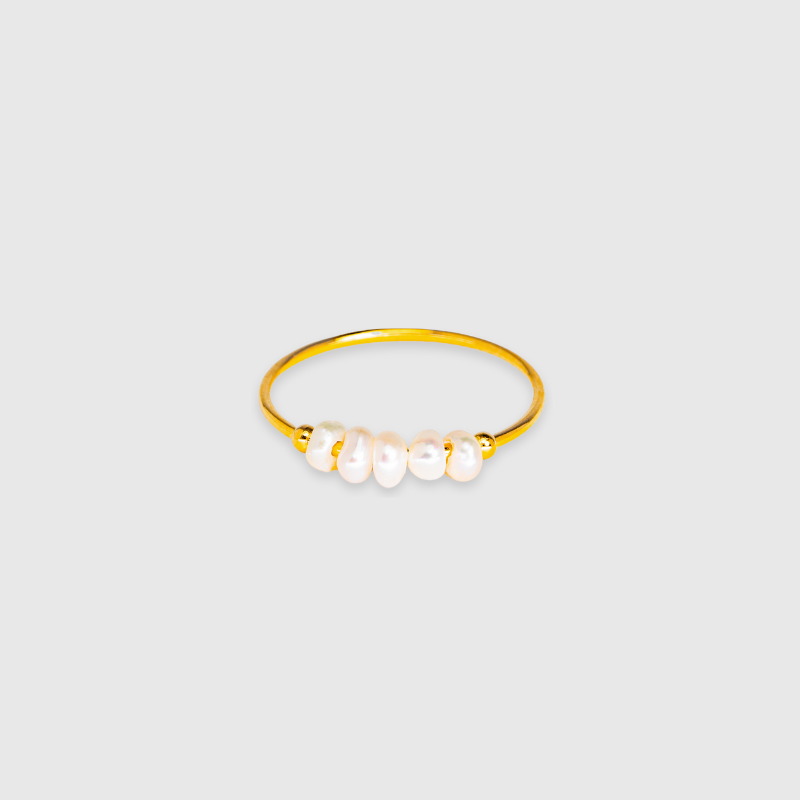 Crafted with care and precision, the ring consists of five freshwater pearls carefully selected for their brilliance and quality to form a beautiful row that sparkles in the light.