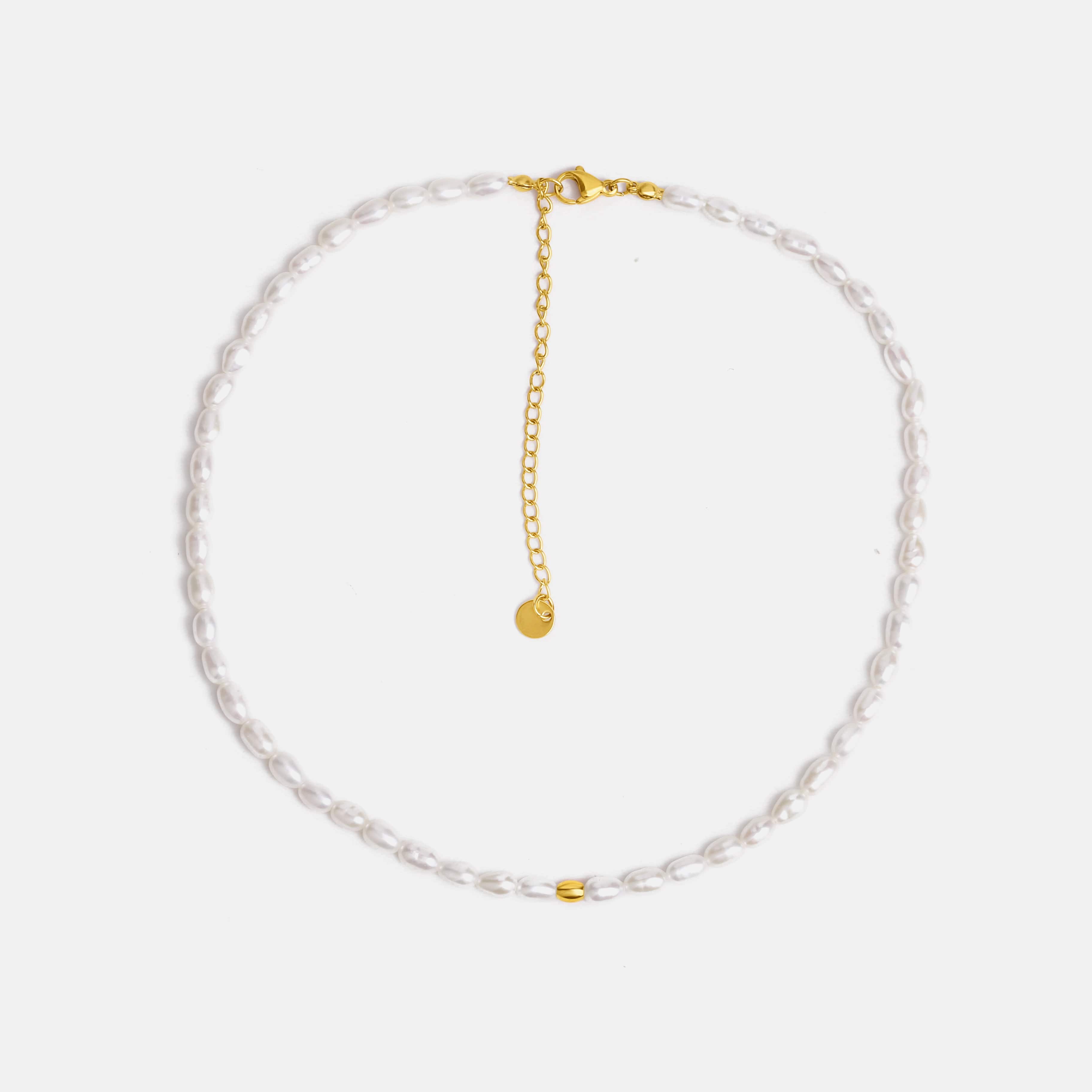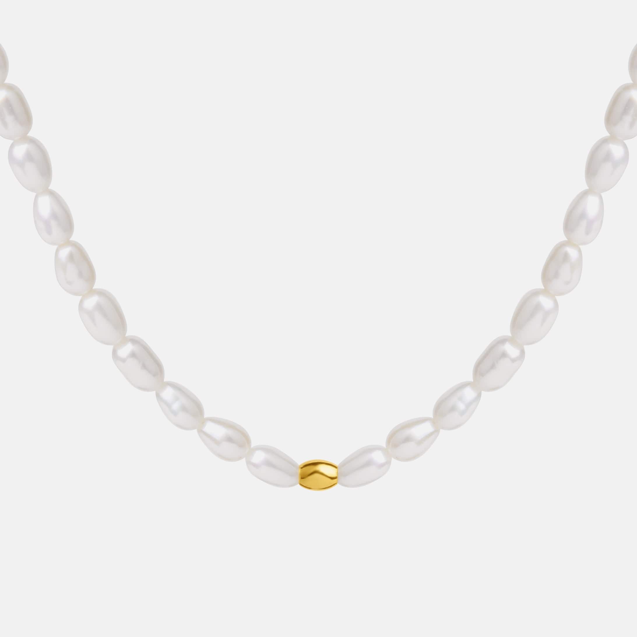 The Monti choker is designed for all jewelry lovers who like to add beautiful, delicate accents and stand out with their feminine elegance. The finely strung, genuine freshwater pearls shine in a simple harmony of white and gold. A necklace that cleverly highlights your true beauty!