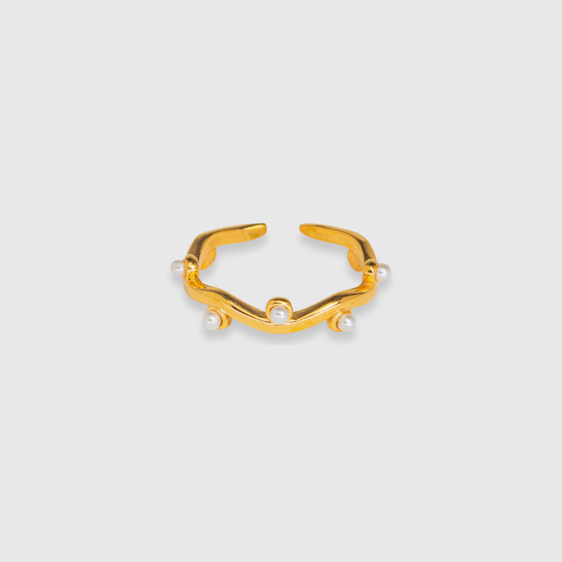 Be swept away by the beauty of this minimalist Wavey Pearl 18K gold ring. Designed with timeless pearls and genuine 18K gold plating, this ring will become a favorite forever.