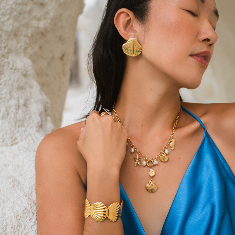Golden seashell studs that instantly turn every day into a beach day zero sand required.