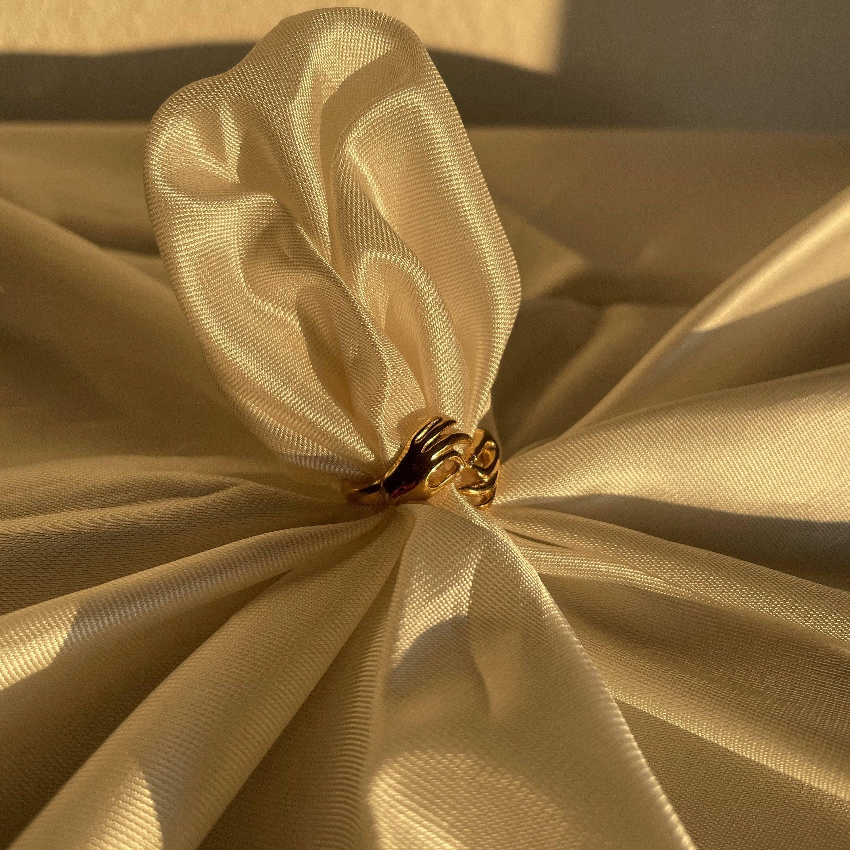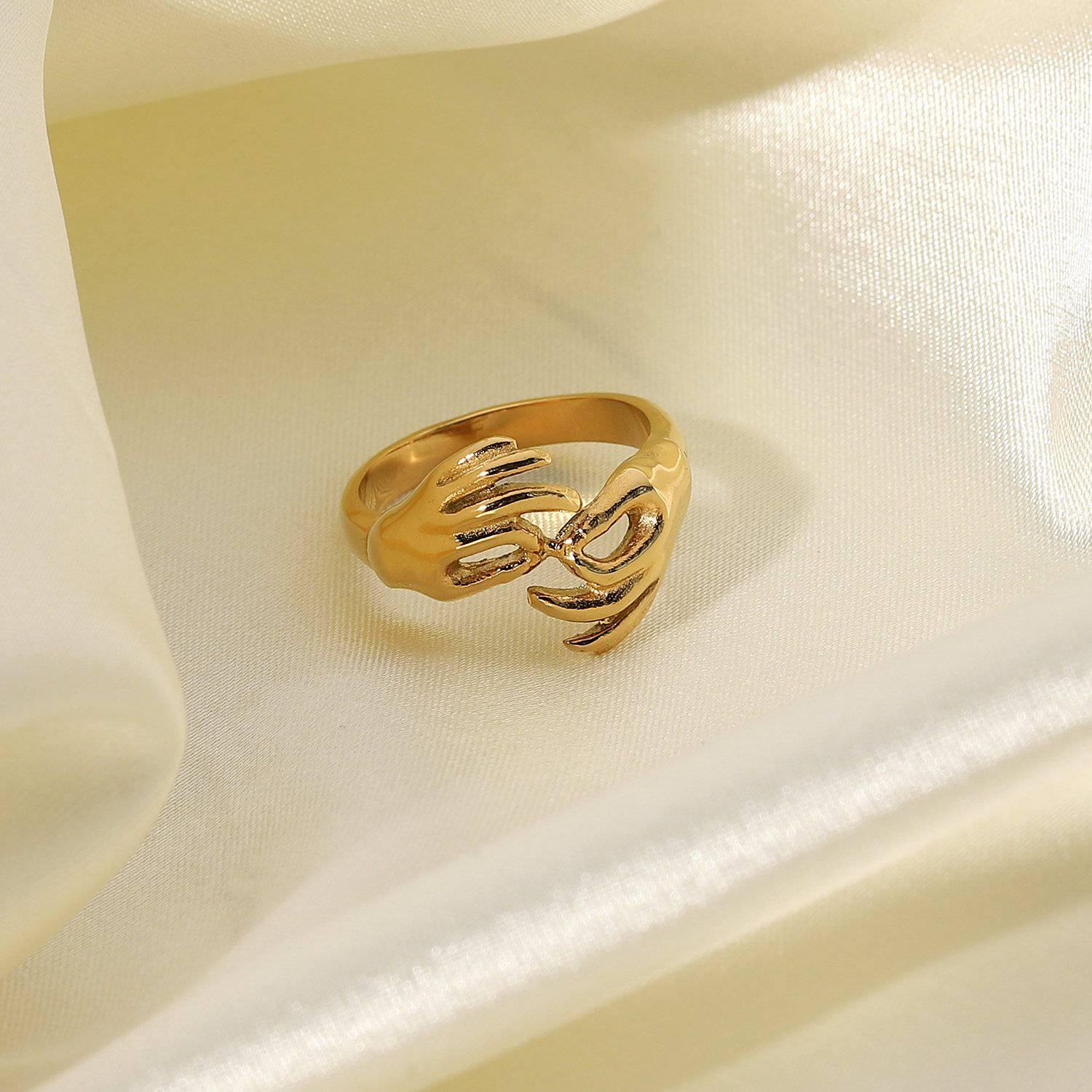 This women's ring, characterized by deep symbolism and a trendy high-gloss yellow gold finish, serves as a chic accessory for particularly fashionable occasions. The trendy design focuses on delicate charm in a setting of sparkling quality; stainless steel and 18k gold plating stand for pure high quality.