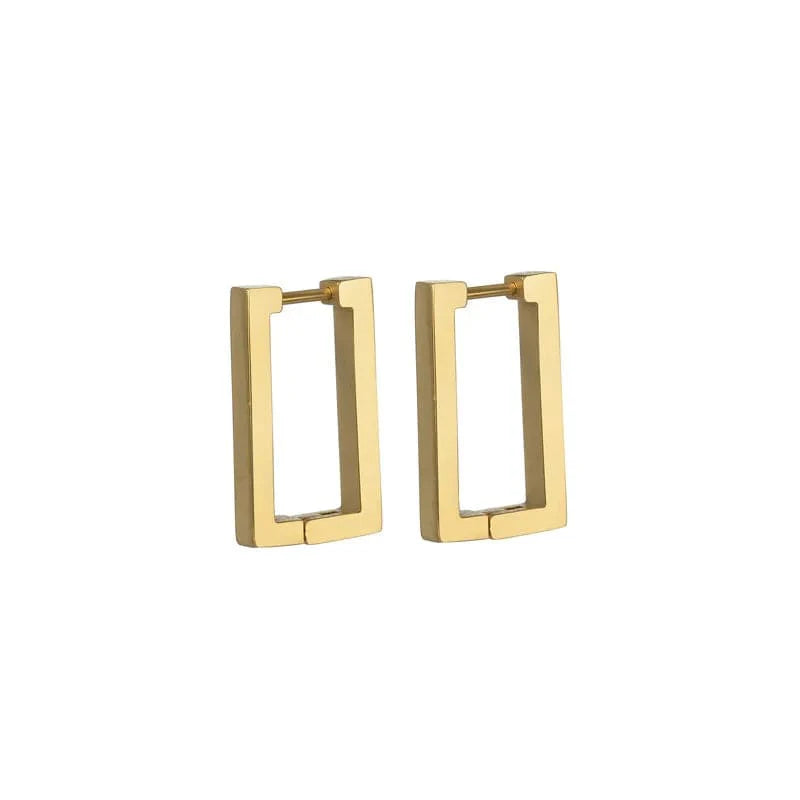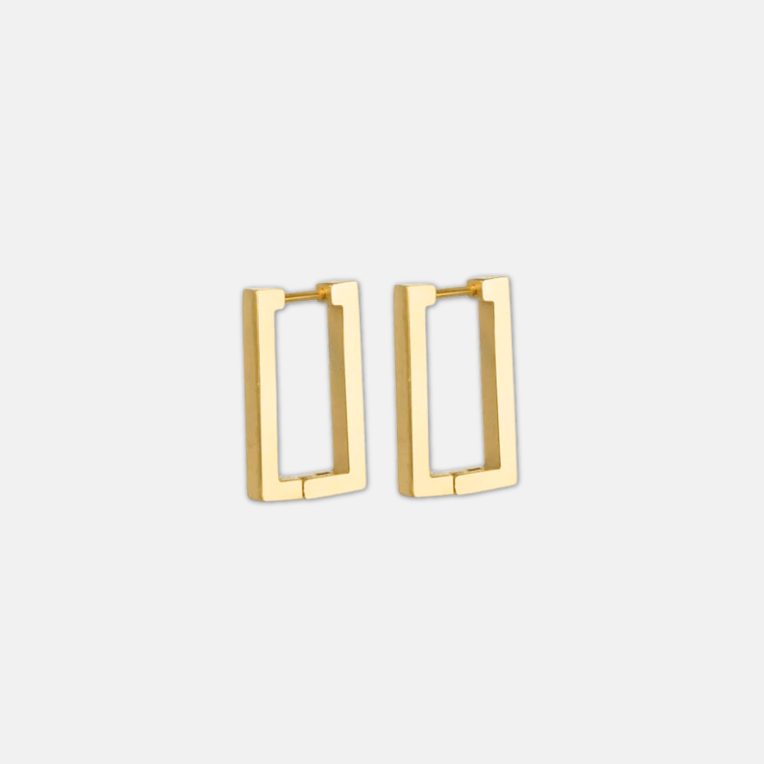 These rectangular hoop earrings made of 18-karat gold-plated stainless steel combine modern design with high-quality craftsmanship. Their geometric shape gives them a striking look that is ideal for any occasion. Robust and durable, these earrings add a stylish touch and go well with both casual and elegant outfits. A must-have for jewelry lovers looking for something special.