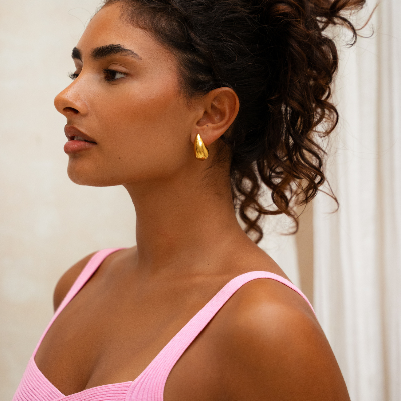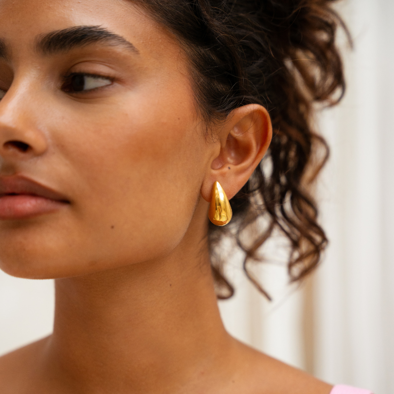 These glossy golden drops bring all the heat, waterproof, lightweight, and sculpted to slay 24/7. Wear them with confidence, sass, and maybe a little sweat (but make it cute).