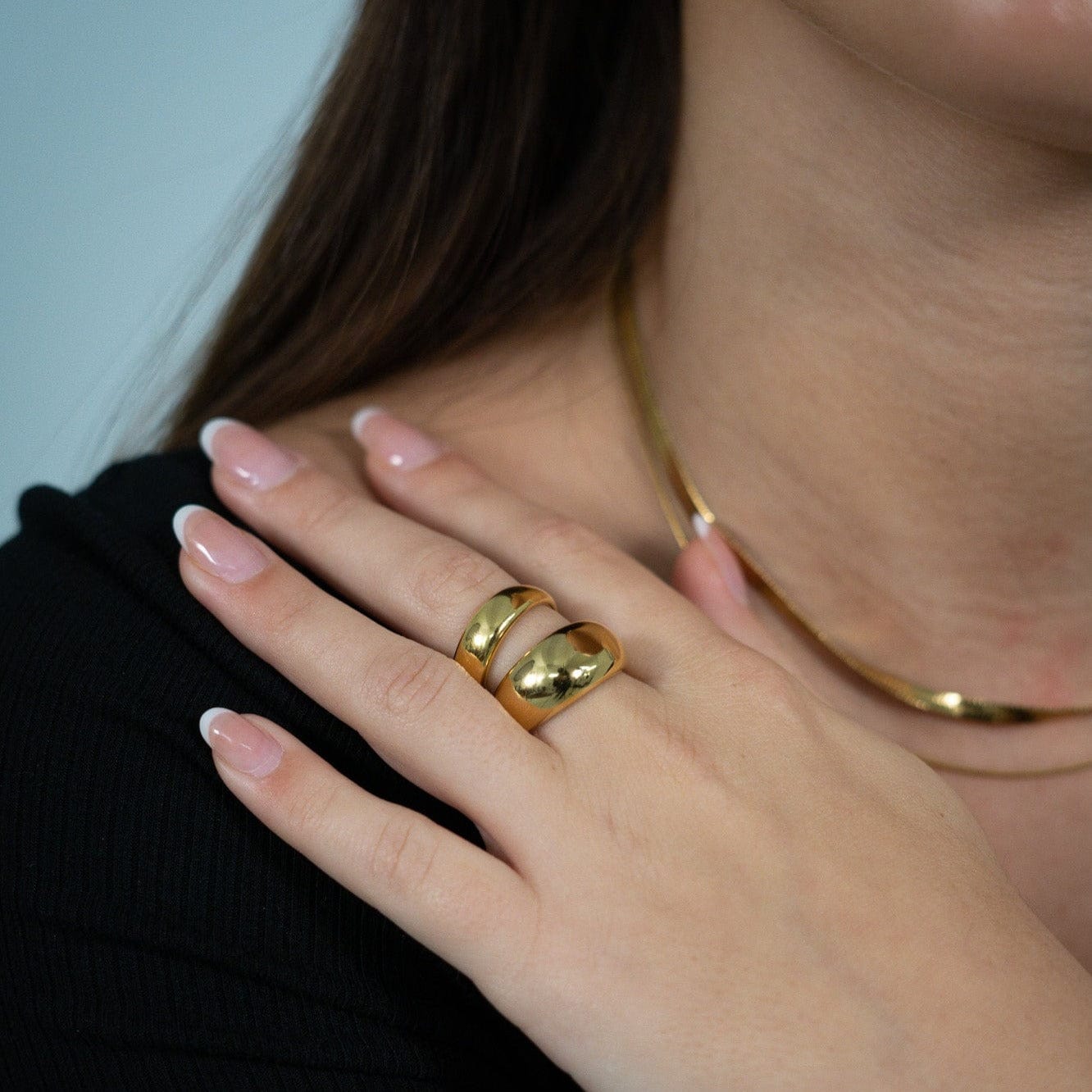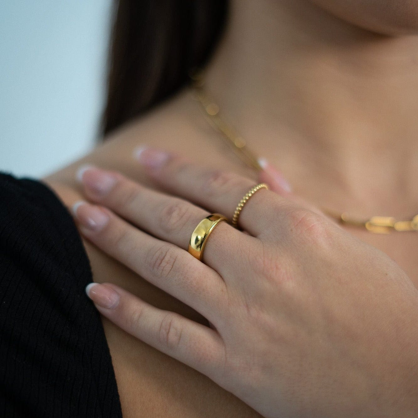 The Talavera ring is a real eye-catcher! Its clear, smooth design with a trendy high-gloss finisah exudes powerful elegance and offers you plenty of scope for versatile gold-colored combinations. If you like something even more striking, our Talvera Large ring offers you even greater dimensions!