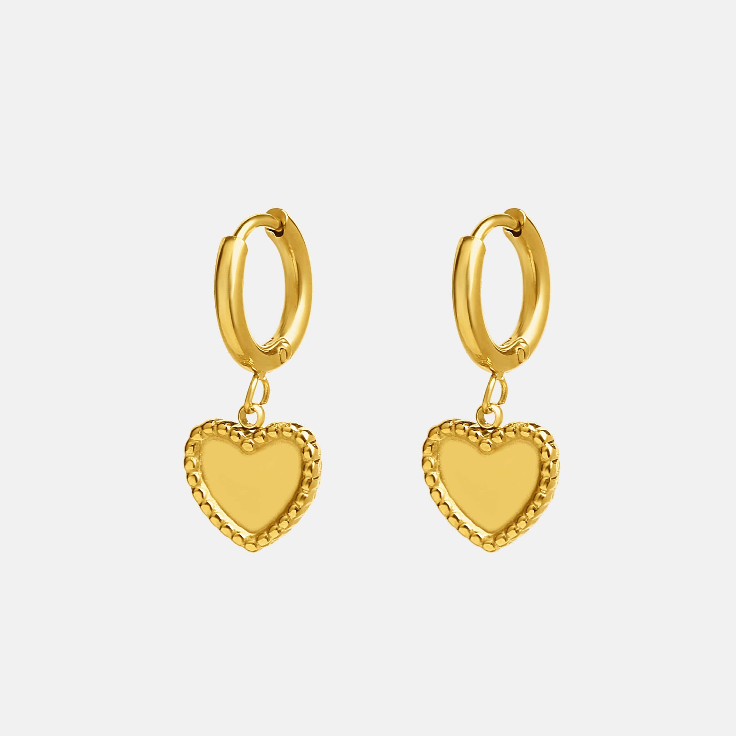 These cute earrings in a classic hoop style with an ornamental heart pendant stand out thanks to their lovingly crafted design. Add this must-have to your beautiful jewelry collection and shine brightly at your next fashionable appearance!