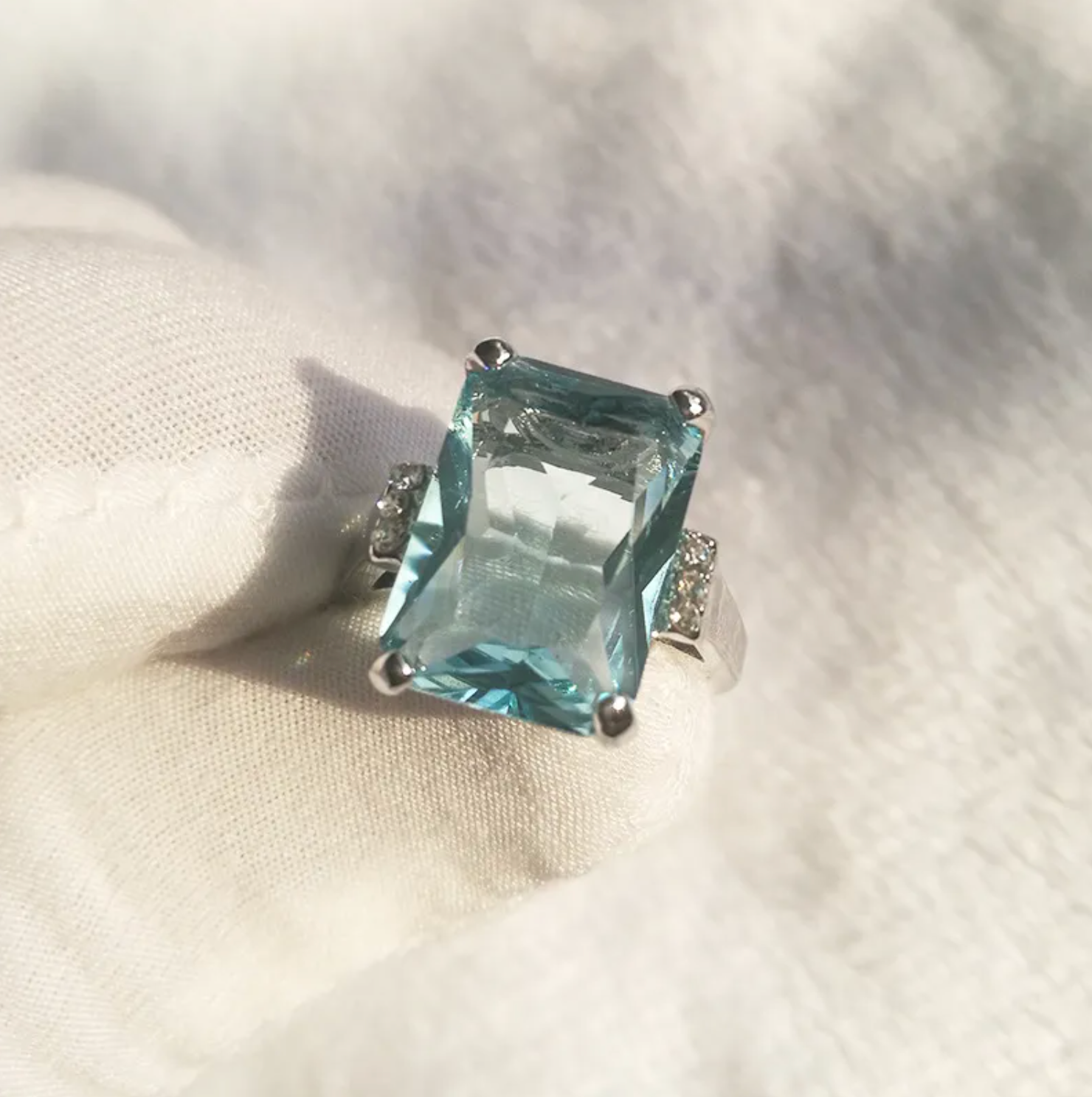 Vintage Light Blue Crystal Ring